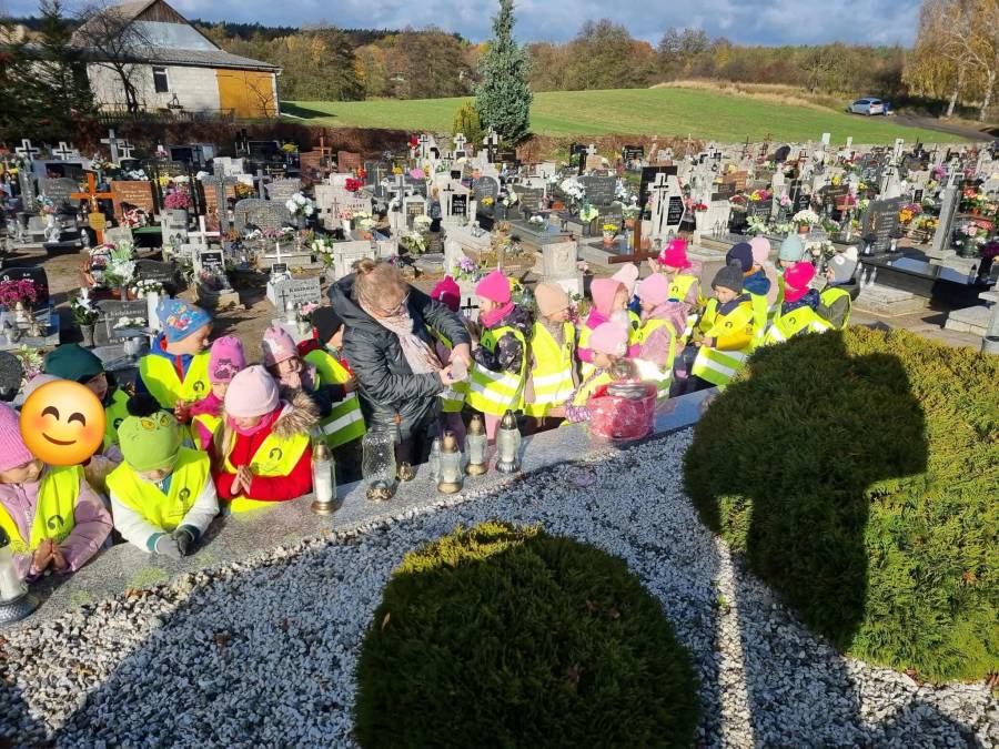 Jak co roku, z okazji uroczystosci Wszystkich Świętych i Dnia Zadusznego, przedszkolaki odwiedzily cmetarz i pomodliły sie przy grobie poległych zolnierzy, zajrzaly takze do kosciola, a kropką nad "i" okazalo sie uczestnictwo w akcji "Odblaskowa szkola".