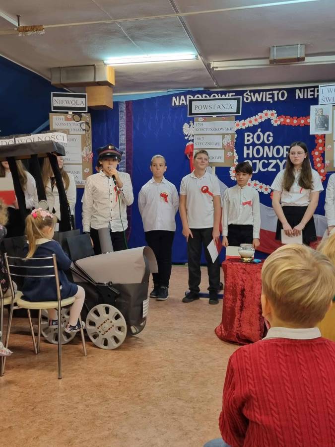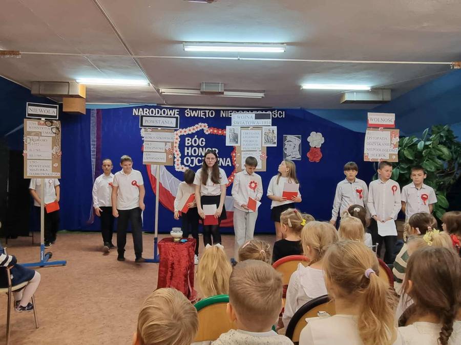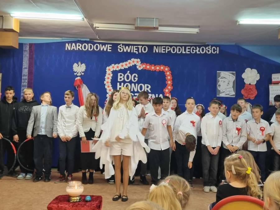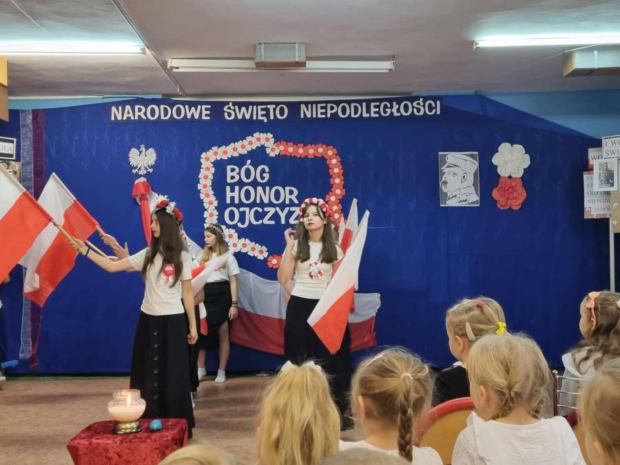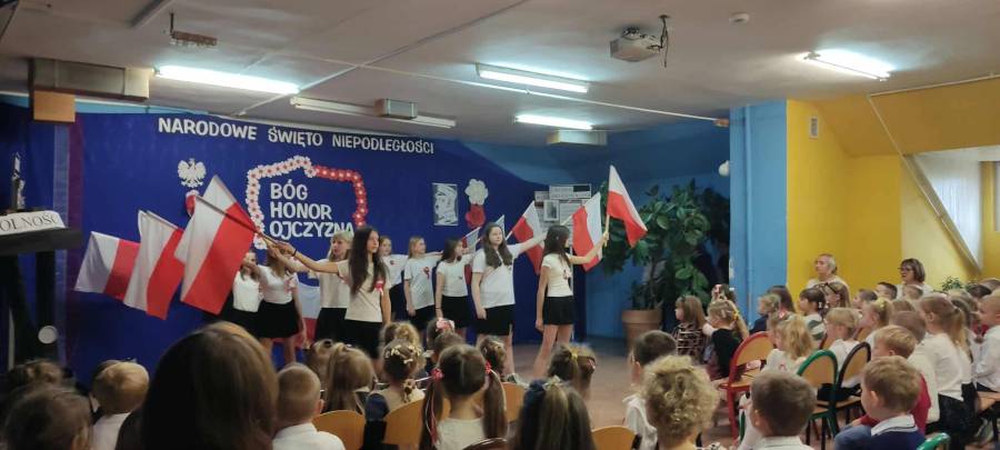 Dnia 7 listopada obchodziliśmy jedno z ważniejszych świąt w historii naszego kraju - Narodowe Święto Niepodległości. Obejrzeliśmy piękne przedstawienie o tematyce patriotycznej w wykonaniu uczniów naszej szkoły a podczas uroczystego apelu z dumą odśpiewaliśmy ,,Mazurka Dąbrowskiego". Tego dnia szczególnie mocno poczuliśmy, jak ważne jest pielęgnowanie patriotyzmu już od najmłodszych lat.