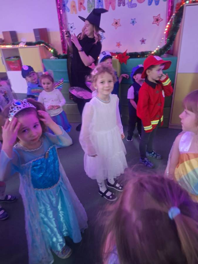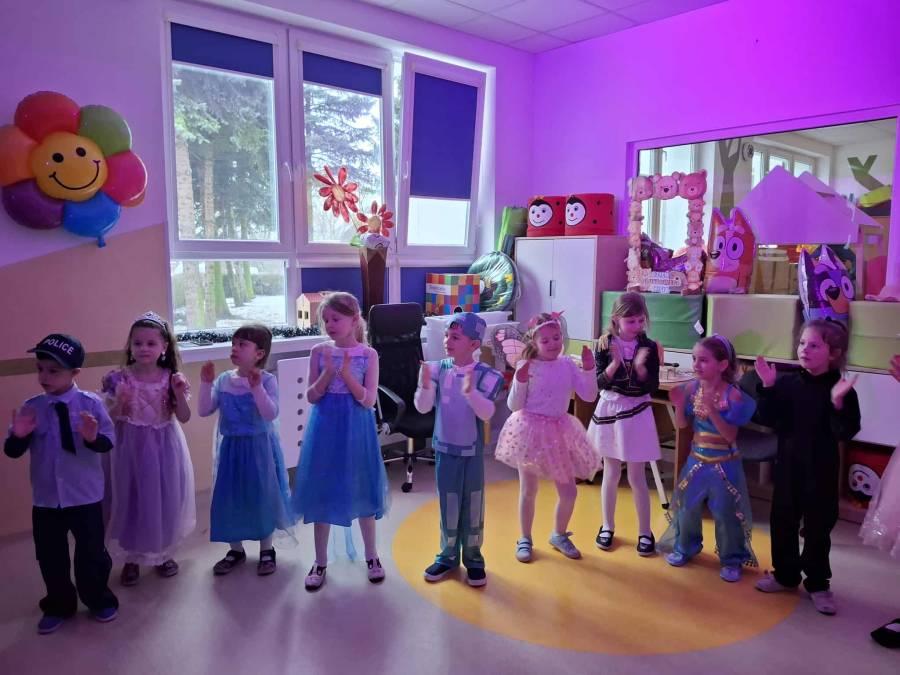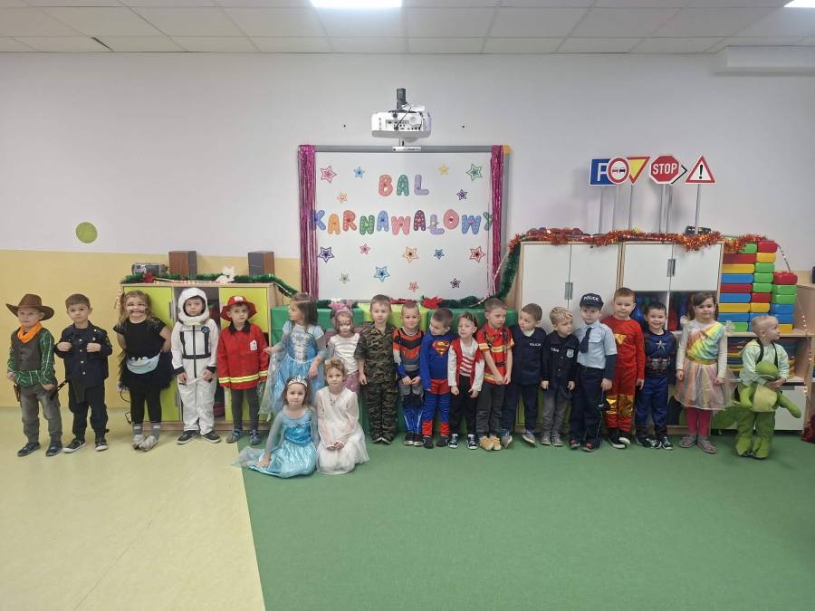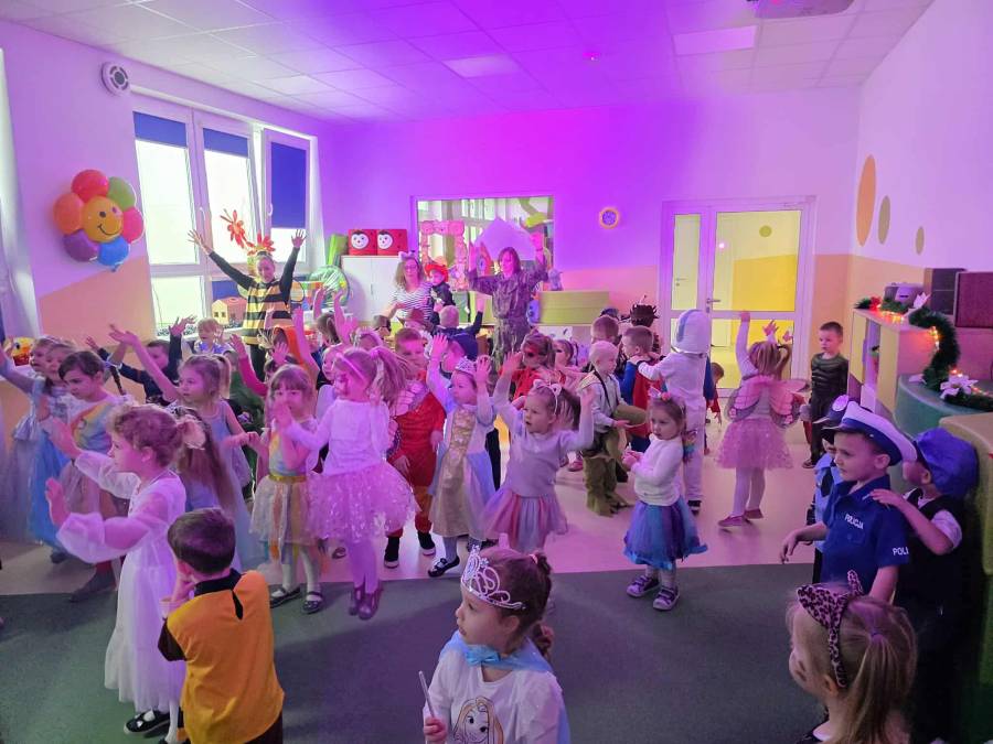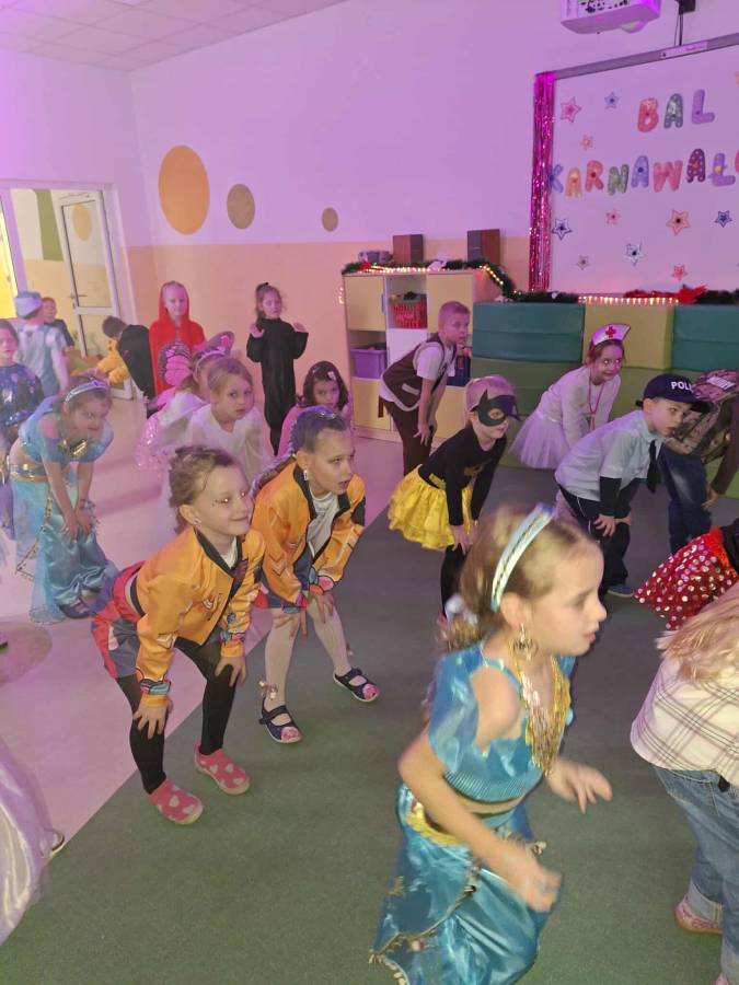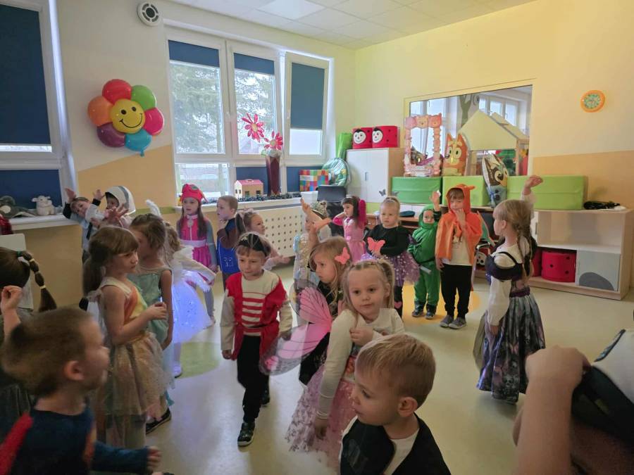 W dniu 14.01.2026 r. w naszym przedszkolu odbył się długo wyczekiwany bal karnawałowy. Dzieci przybyły w pięknych, pomysłowych przebraniach. Wśród uczestników można było spotkać księżniczki, super bohaterów, zwierzątka, wróżki, policjantów oraz wiele innych barwnych postaci. Wszystkie stroje wzbudzały zachwyt i wywoływały uśmiechy na twarzach. Bal rozpoczął się wspólnymi tańcami i zabawami przy muzyce. Nie zabrakło również krótkiego poczęstunku, który pozwolił uczestnikom nabrać sił do dalszej zabawy. Bal karnawałowy dostarczył dzieciom wiele radości i niezapomnianych wrażeń. Wszyscy bawili się znakomicie, a uśmiech i dobra zabawa towarzyszyły nam przez cały czas trwania wydarzenia.