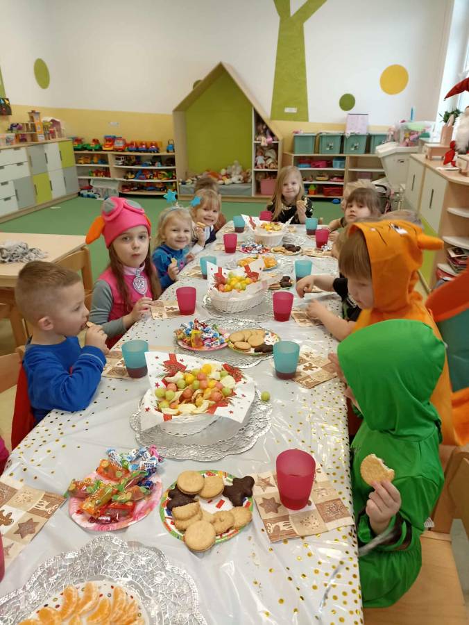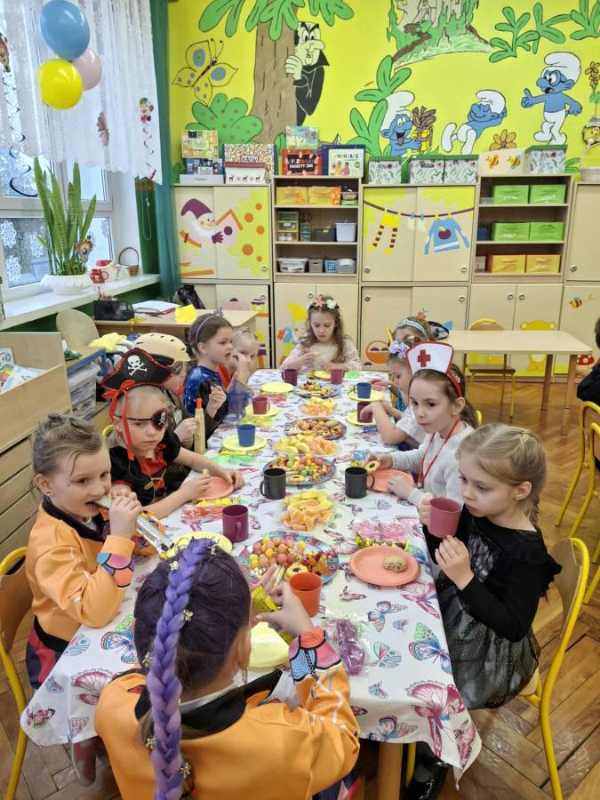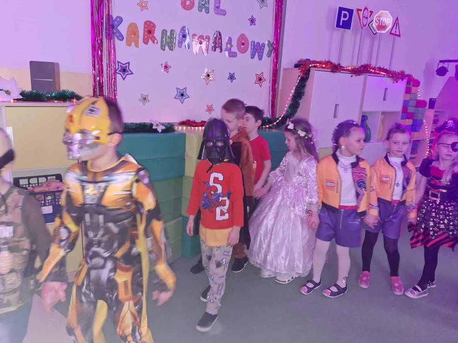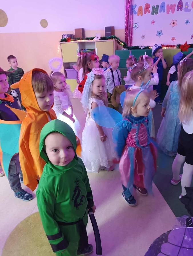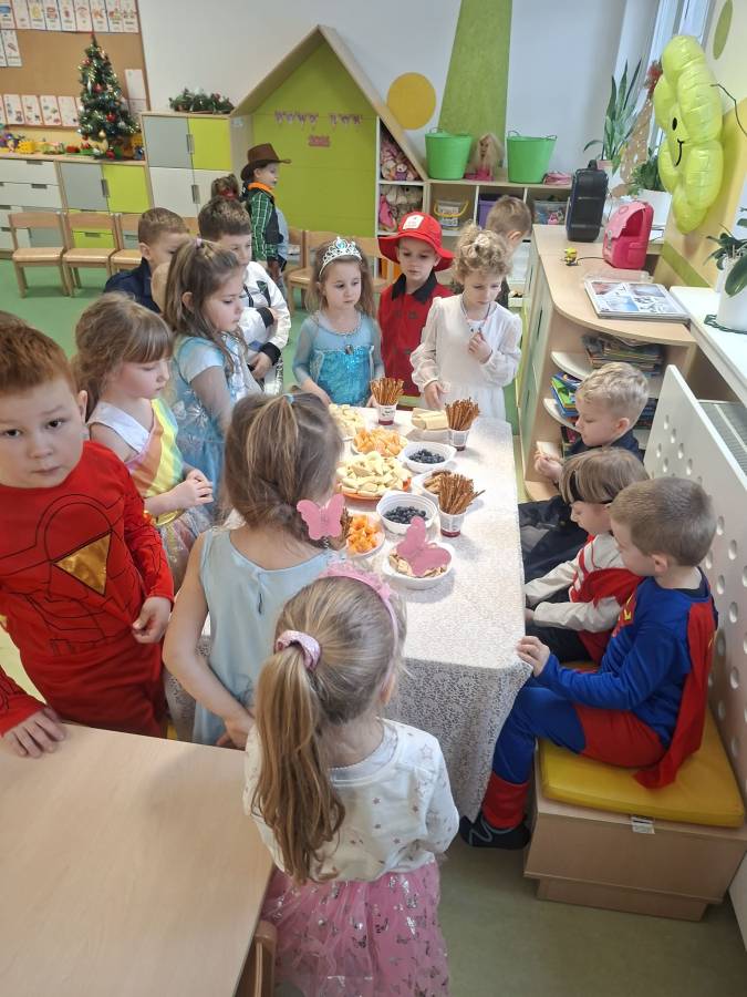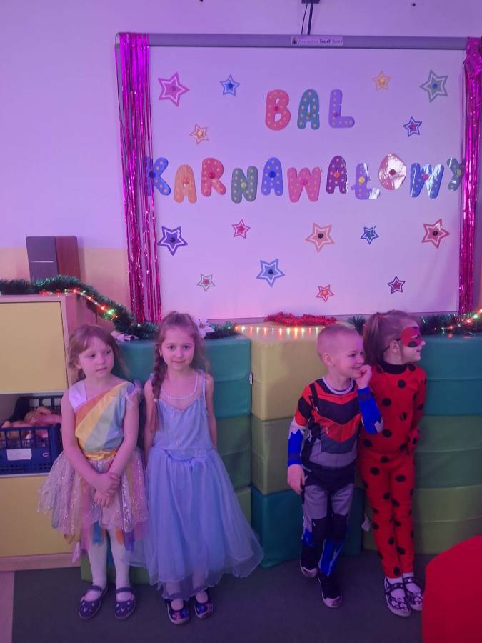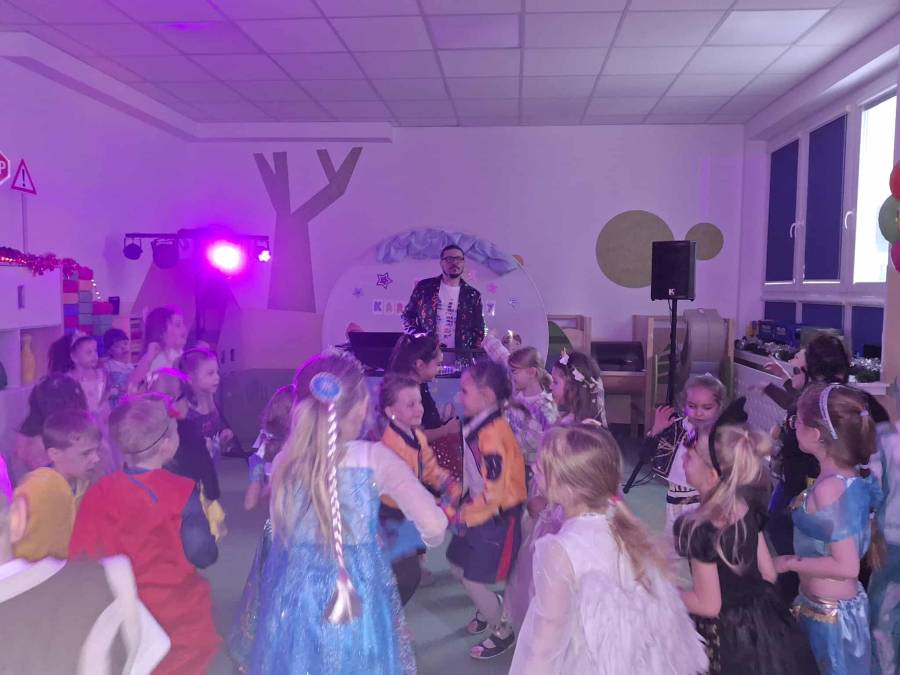 W dniu 14.01.2026 r. w naszym przedszkolu odbył się długo wyczekiwany bal karnawałowy. Dzieci przybyły w pięknych, pomysłowych przebraniach. Wśród uczestników można było spotkać księżniczki, super bohaterów, zwierzątka, wróżki, policjantów oraz wiele innych barwnych postaci. Wszystkie stroje wzbudzały zachwyt i wywoływały uśmiechy na twarzach. Bal rozpoczął się wspólnymi tańcami i zabawami przy muzyce. Nie zabrakło również krótkiego poczęstunku, który pozwolił uczestnikom nabrać sił do dalszej zabawy. Bal karnawałowy dostarczył dzieciom wiele radości i niezapomnianych wrażeń. Wszyscy bawili się znakomicie, a uśmiech i dobra zabawa towarzyszyły nam przez cały czas trwania wydarzenia.