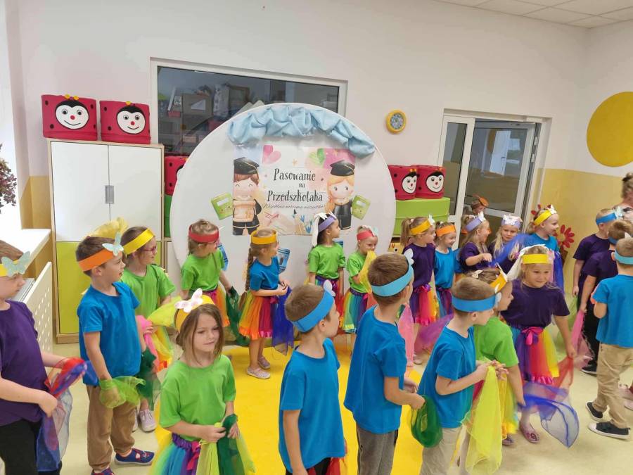 Uroczyste zakończenie roku szkolnego rozpoczęło się w sali gimnastycznej, gdzie pan dyrektor podziękował dzieciom za zaangażowanie, nauczycielom za trud włożony w codzienną pracę, a rodzicom za wsparcie i współpracę. Następnie nadszedł czas na występ najstarszych przedszkolaków, którzy tradycyjnie zatańczyli poloneza. Po części oficjalnej dzieci wraz z rodzicami udali się do przedszkolnych sal, gdzie zostały wręczone dyplomy i upominki a dzieci kończące przedszkole zostały uroczyście pożegnane. Nie odbyło się bez wzruszenia, ale też radości z nadchodzących wakacji.