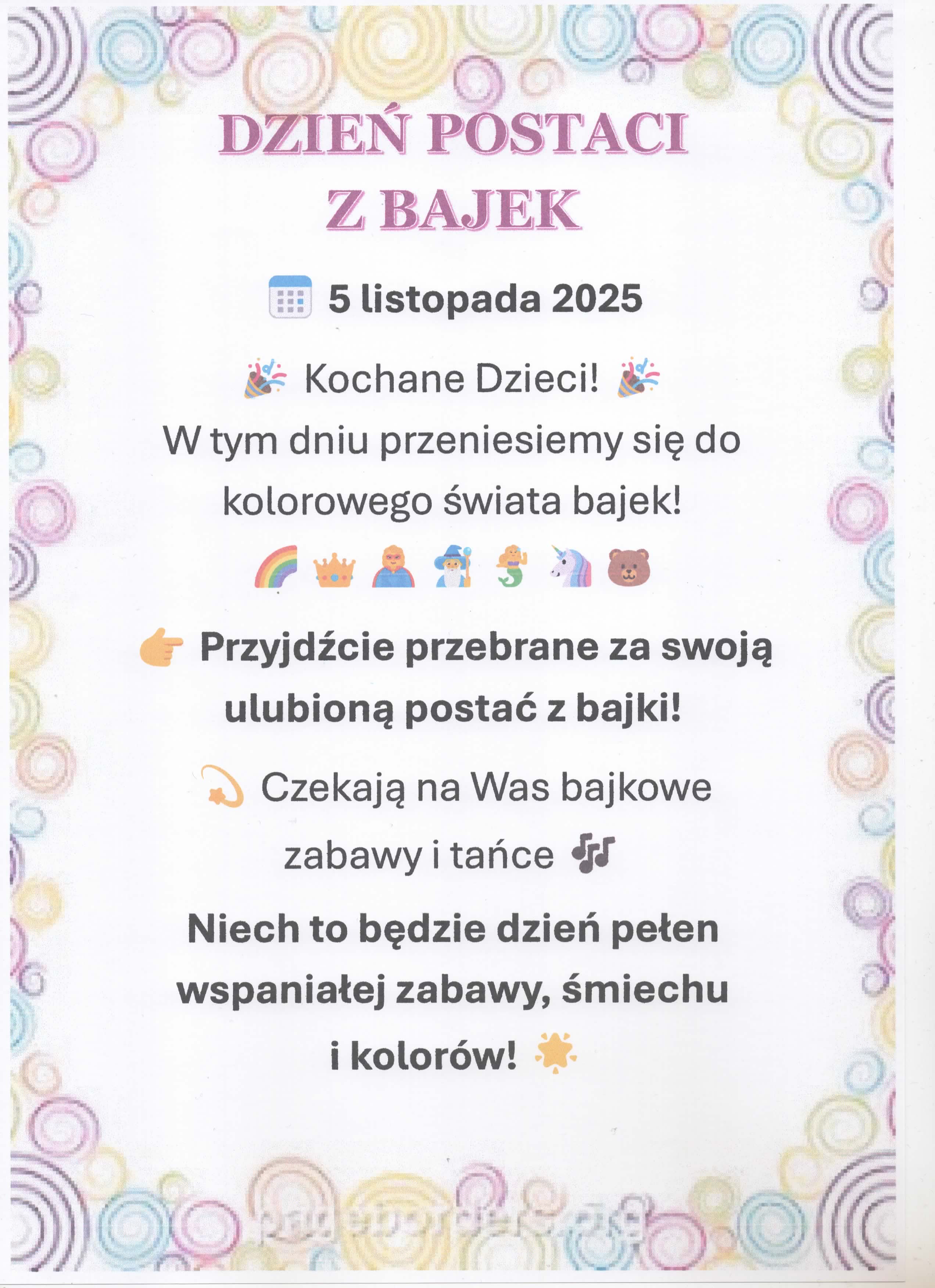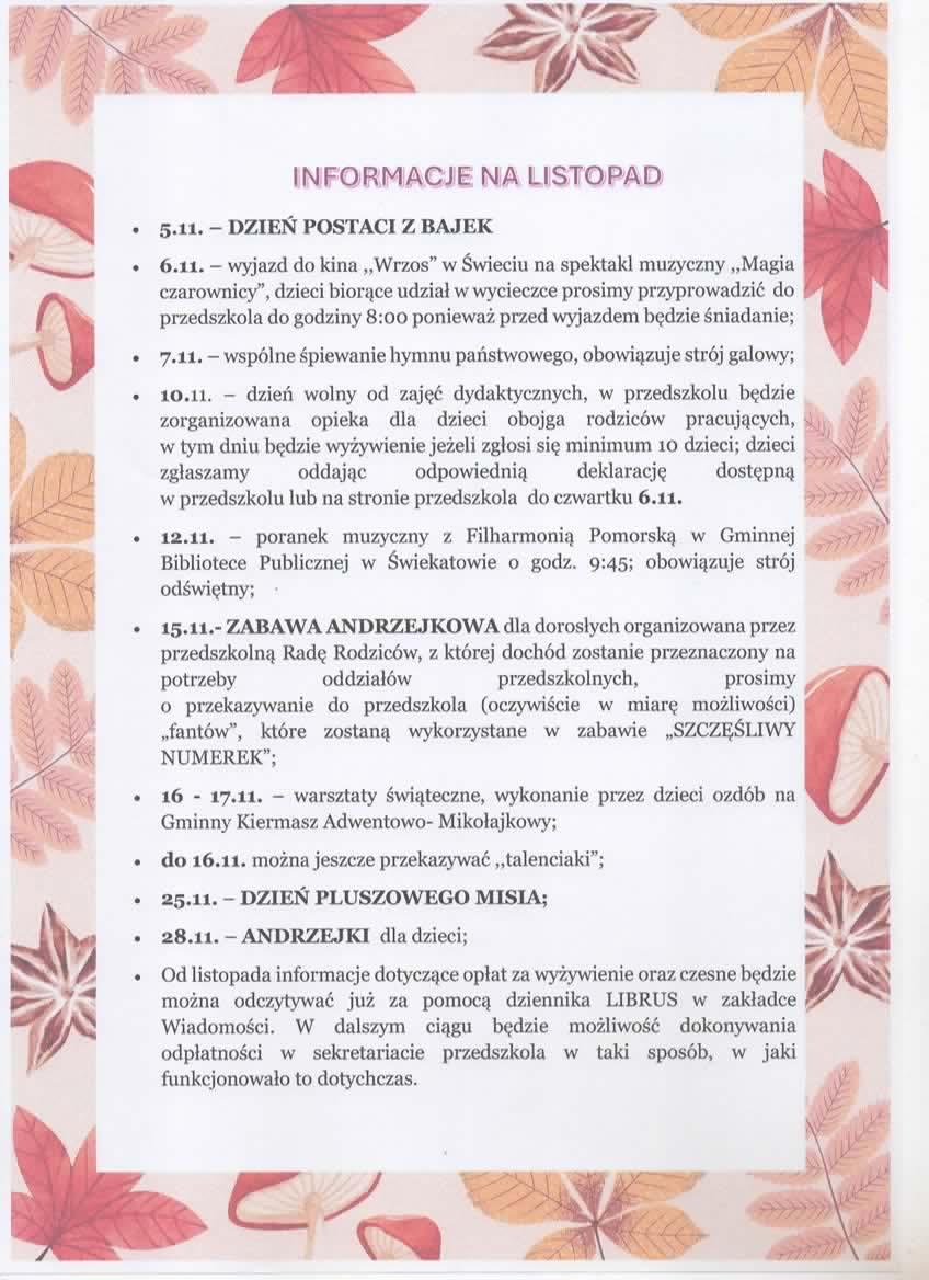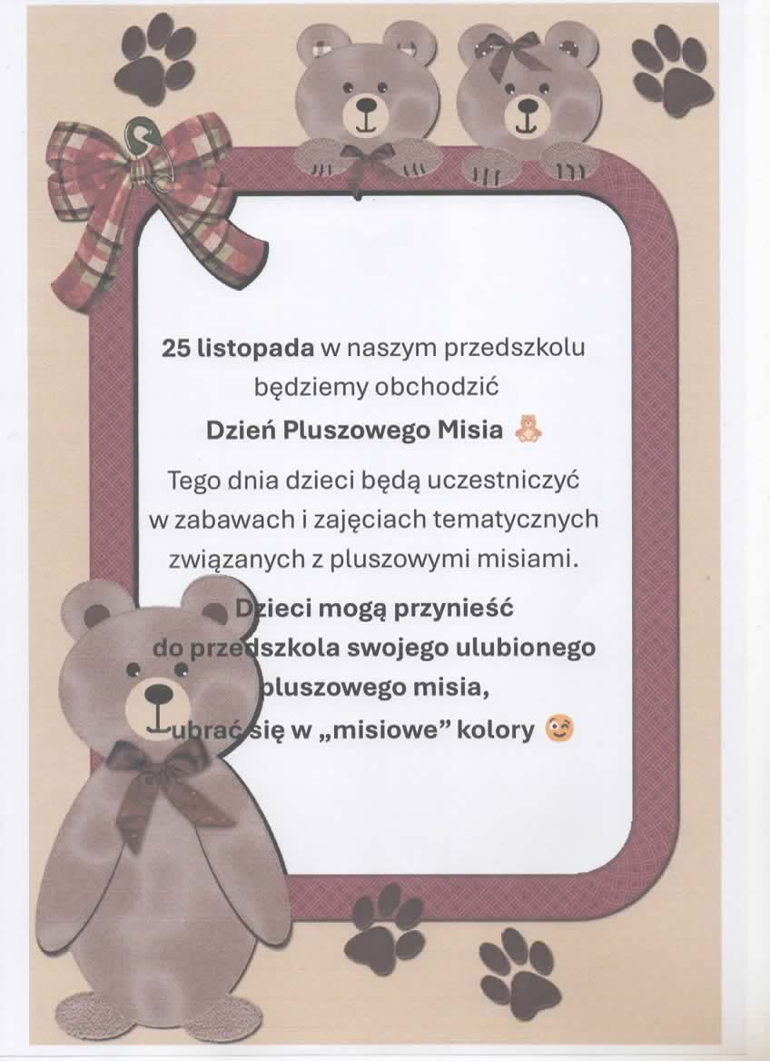 Prosimy o uwzględnienie tej zmiany przy planowaniu przyprowadzania i odbioru dzieci.