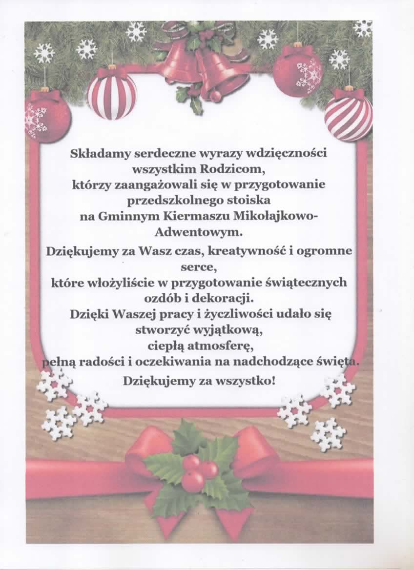 ze strony przedszkola lub w przedszkolu.